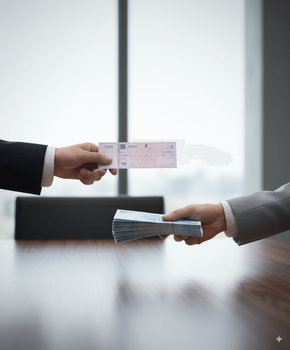 چک خریداریشده آماده تحویل یا نقد سریع است. با این مرحله، خریدار میتواند بدون هیچ دغدغهای وجه خود را دریافت کند